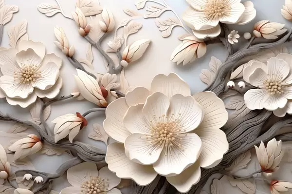Fototapet Volymetriska blommor och grenar i ljusa toner Nr. w09272
