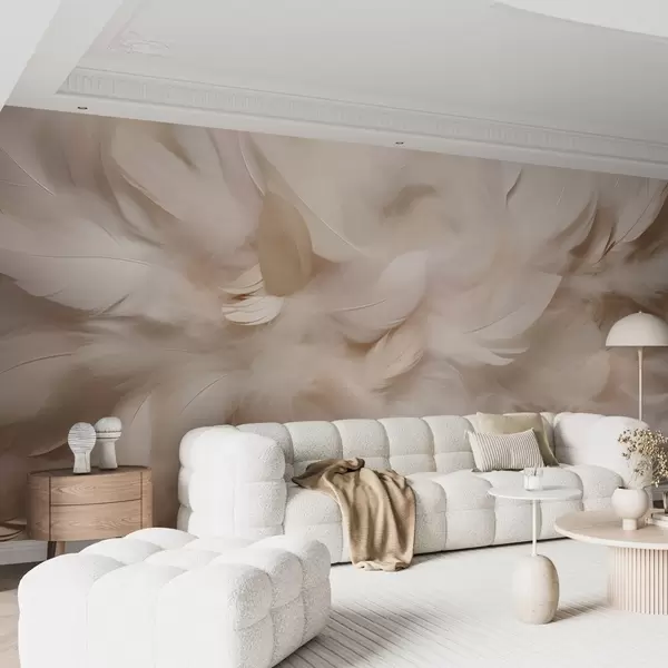 Fototapet Fluffiga fjädrar och dun i krämiga nyanser w09274