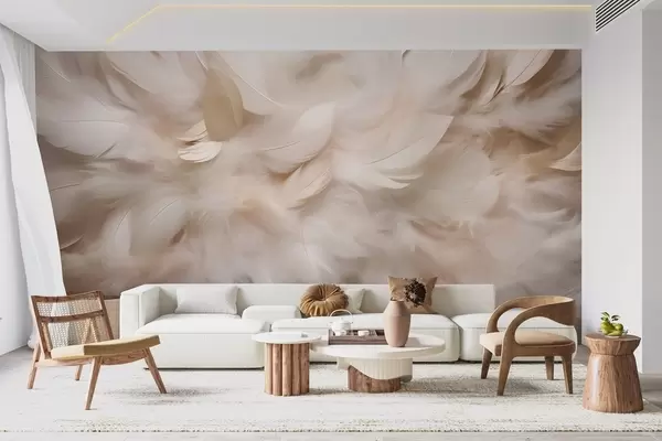 Fototapet Fluffiga fjädrar och dun i krämiga nyanser Nr. w09274