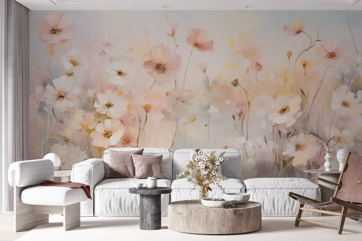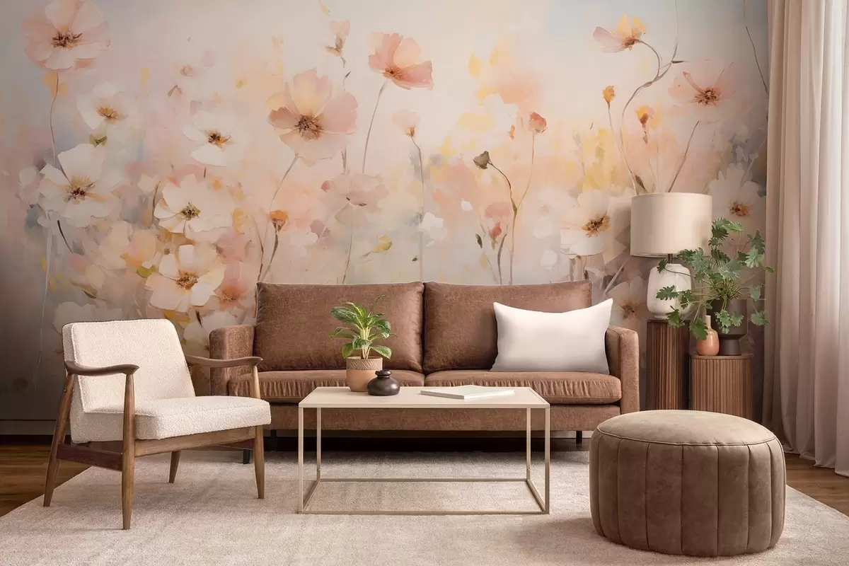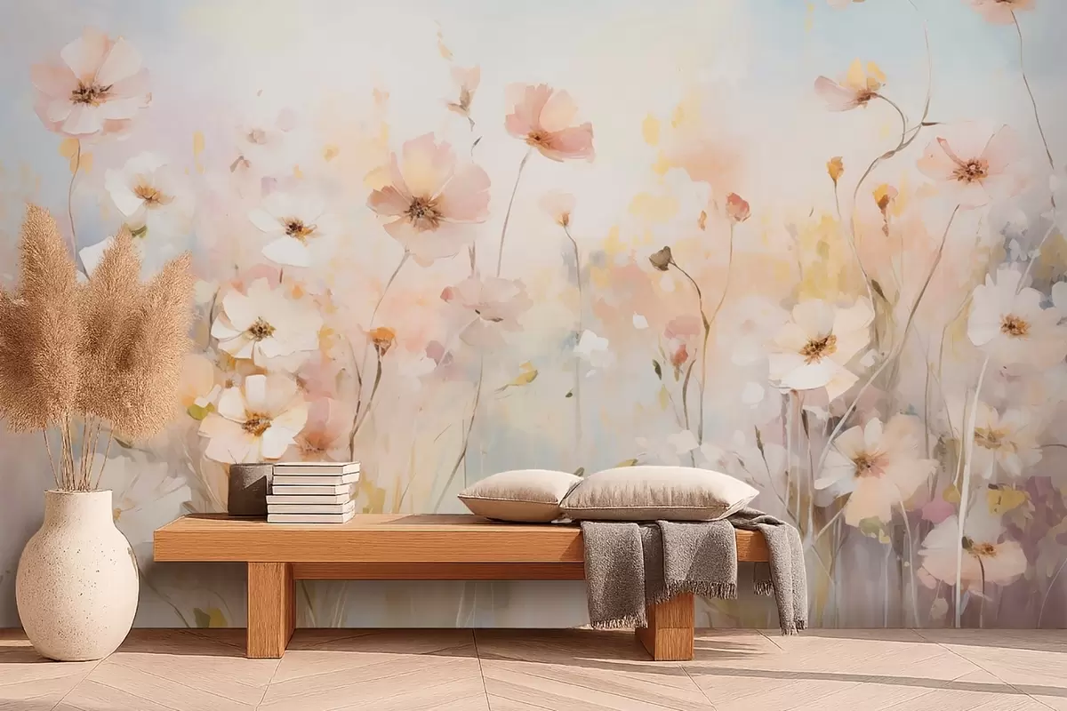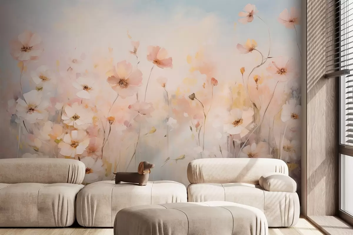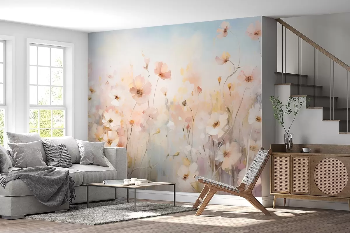 Fototapet Vildblommor i pastellfärger i akvarellstil Nr. w09280