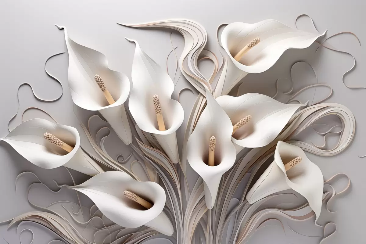 Fototapet Volymetriska callaliljor i krämiga toner med 3D-effekt Nr. w09281