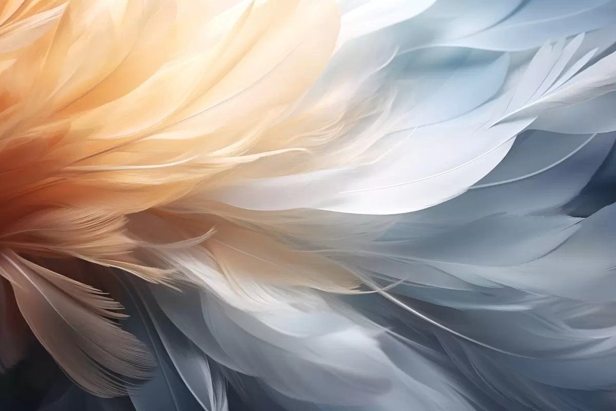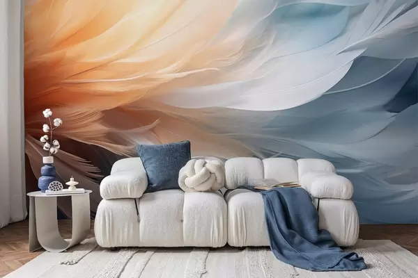 Fototapet Fina fjädrar i orange och blå gradienttoner Nr. w09282