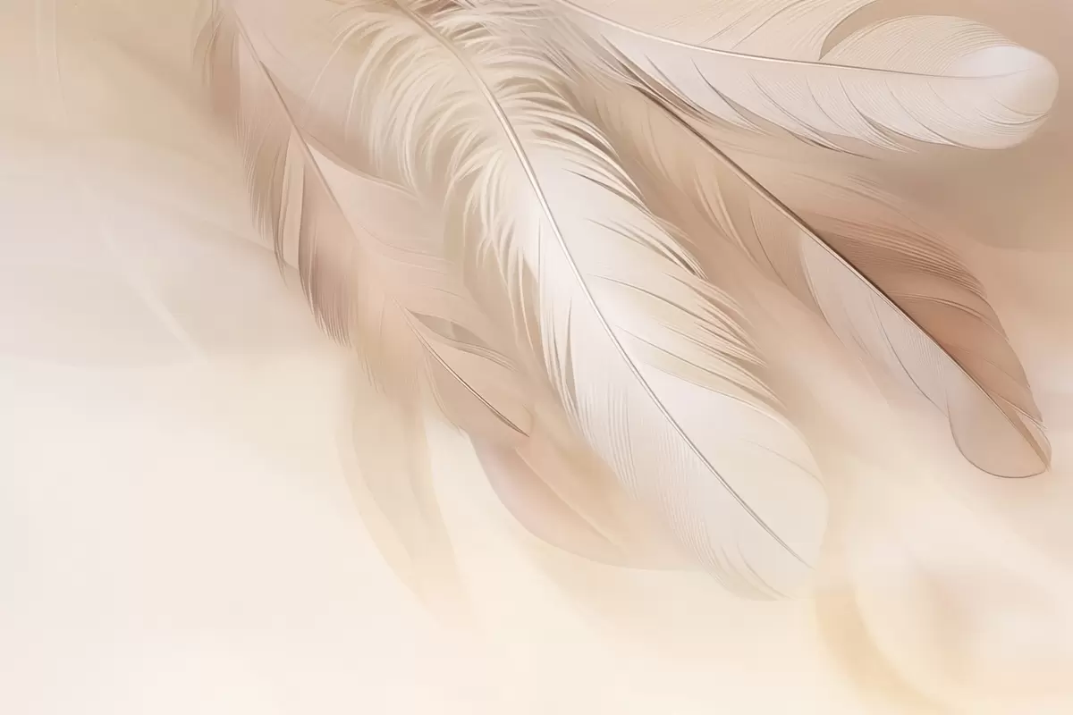 Fototapet Viktlösa fjädrar i en mjuk dimma av varma toner Nr. w09286