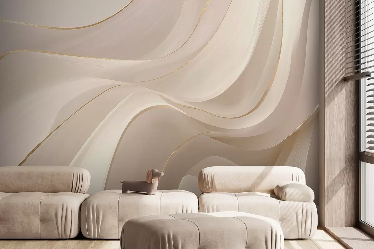 Fototapet Böljande vågor med gula accenter i krämigt ljus Nr. w09303