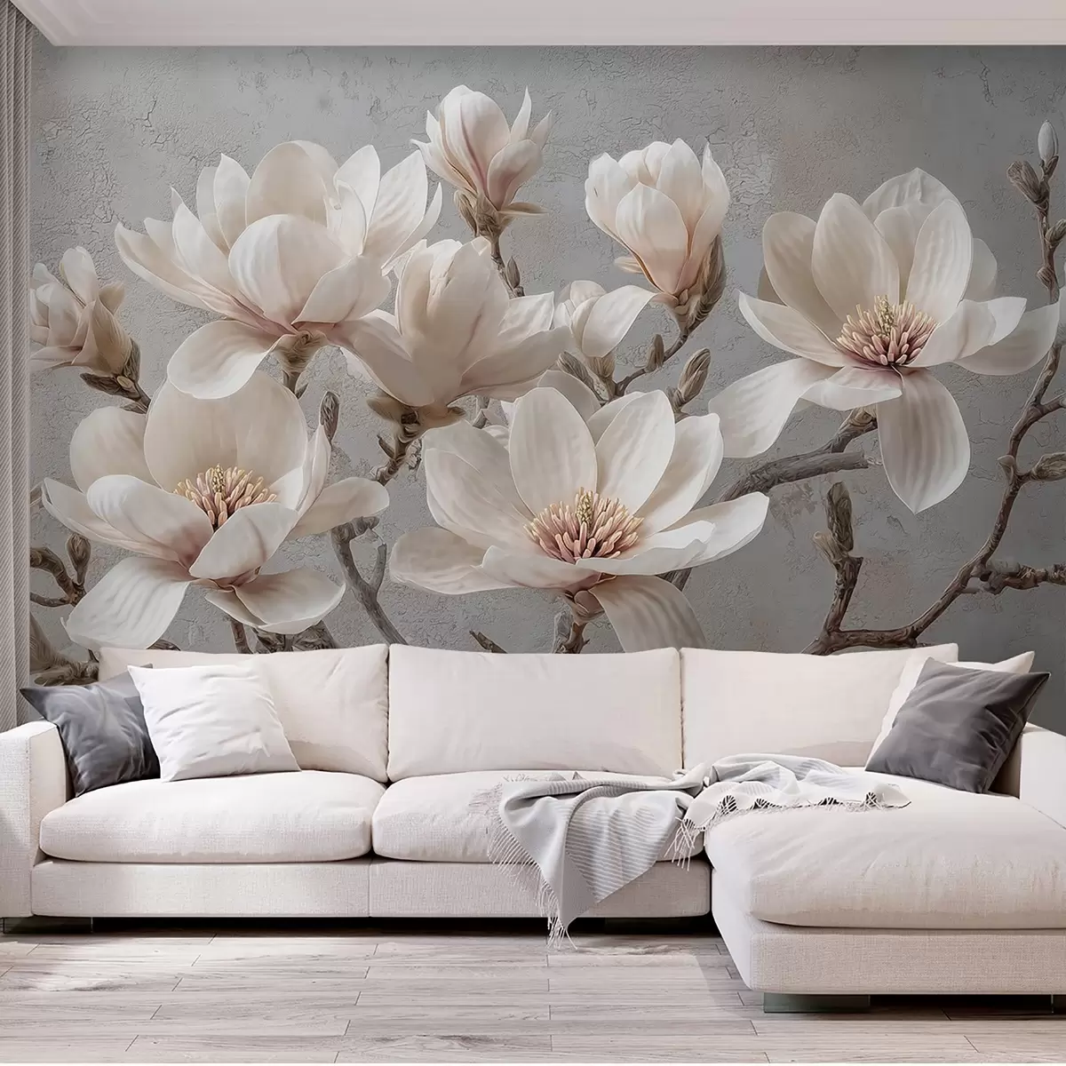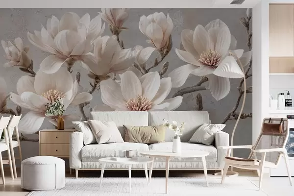 Fototapet Magnoliagrenar med stora ljusa blommor i dämpade toner Nr. w09305