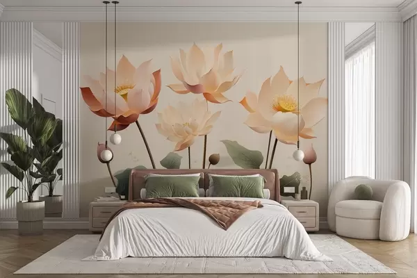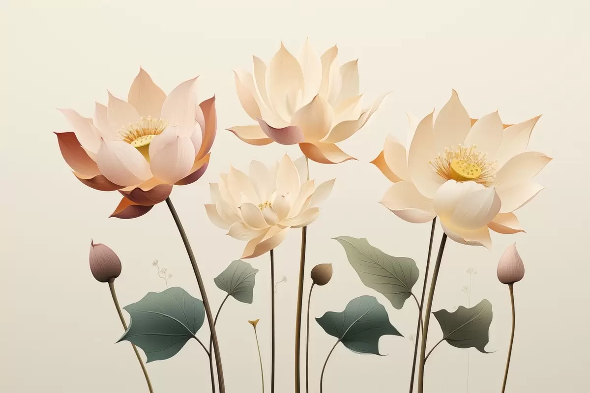 Fototapet Eleganta lotusblommor i en mild pastellfärgad palett Nr. w09306