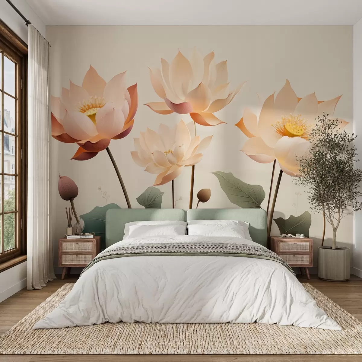 Fototapet Eleganta lotusblommor i en mild pastellfärgad palett Nr. w09306