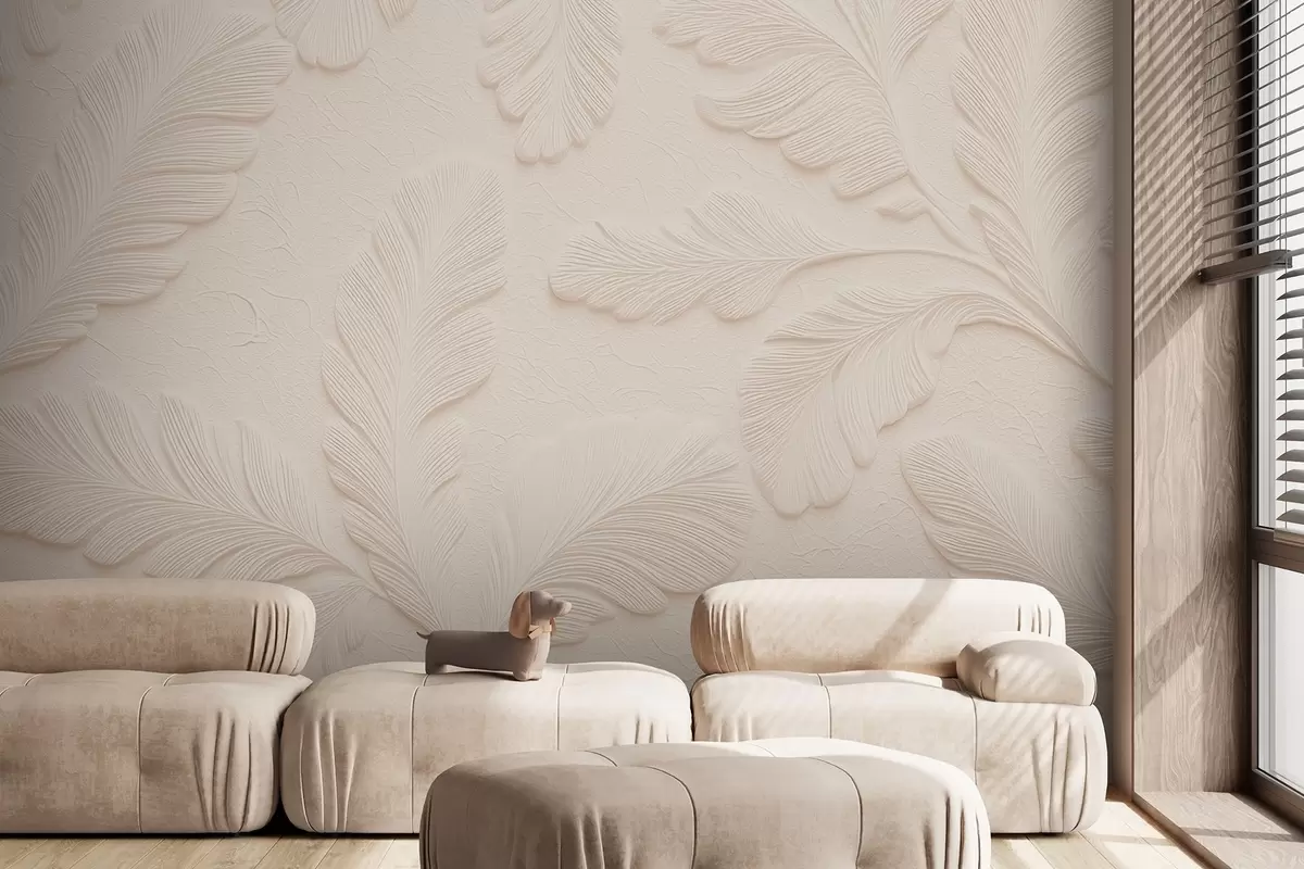 Fototapet Präglade löv på en ljus bakgrund med en sprucken effekt Nr. w09309