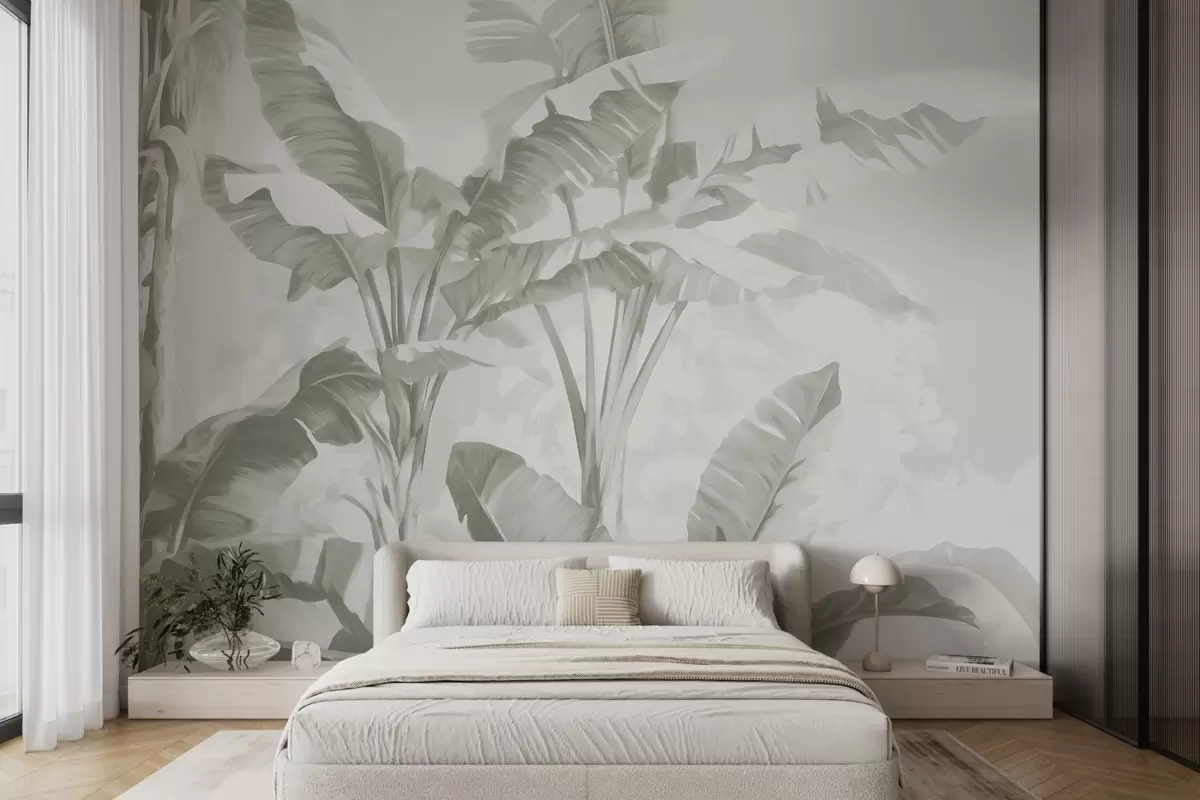 Fototapet Tropiska bananblad i mjuka gröna nyanser Nr. w09311v1