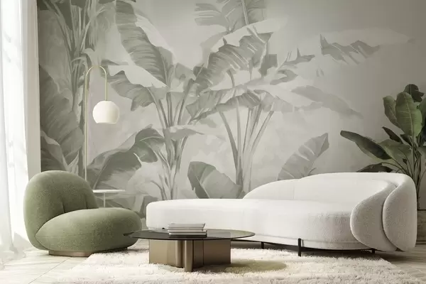 Fototapet Tropiska bananblad i mjuka gröna nyanser Nr. w09311v1