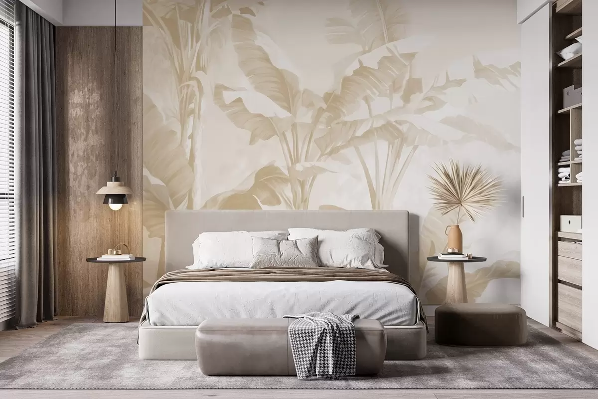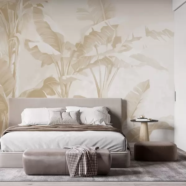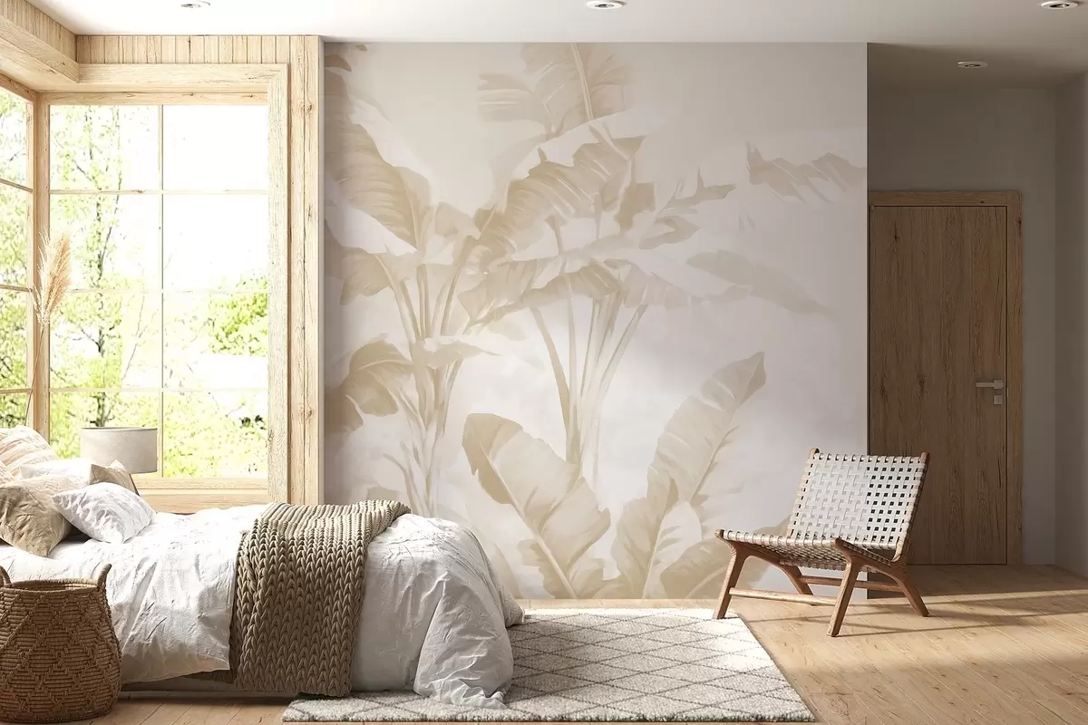 Fototapet Tropiska bananblad i mjuka beige toner Nr. w09311v2