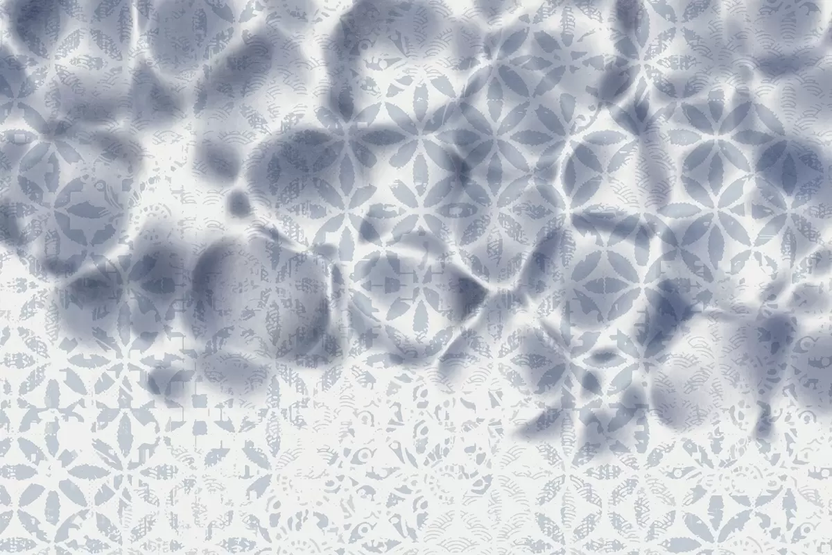 Fototapet Abstrakt texturerad konst med blått blommönster, bleknad och suddig effekt, vilket skapar en mjuk och drömsk atmosfär Nr. w09322