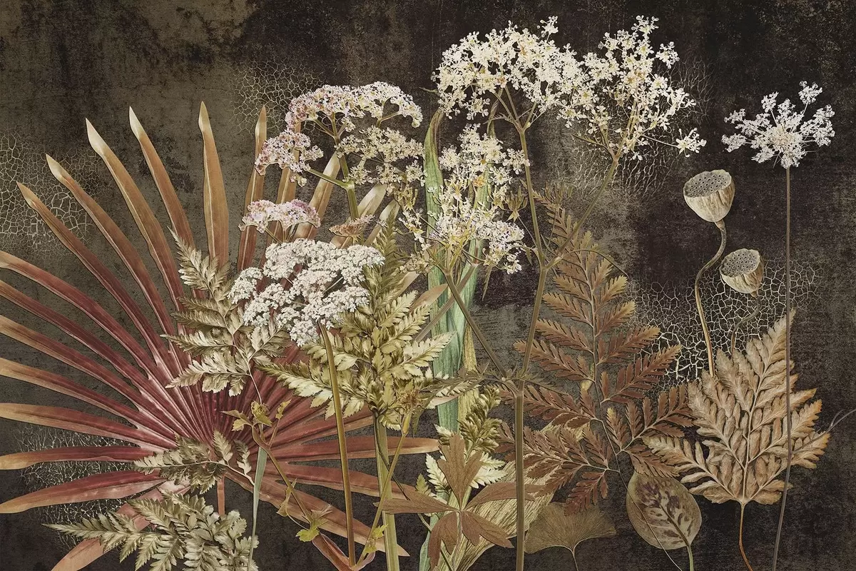 Fototapet Herbarium på mörk bakgrund Nr. w09323