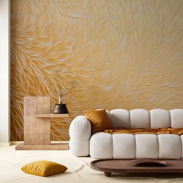 Fototapet Präglat bladmönster i varma honungsgula toner Nr. w09325