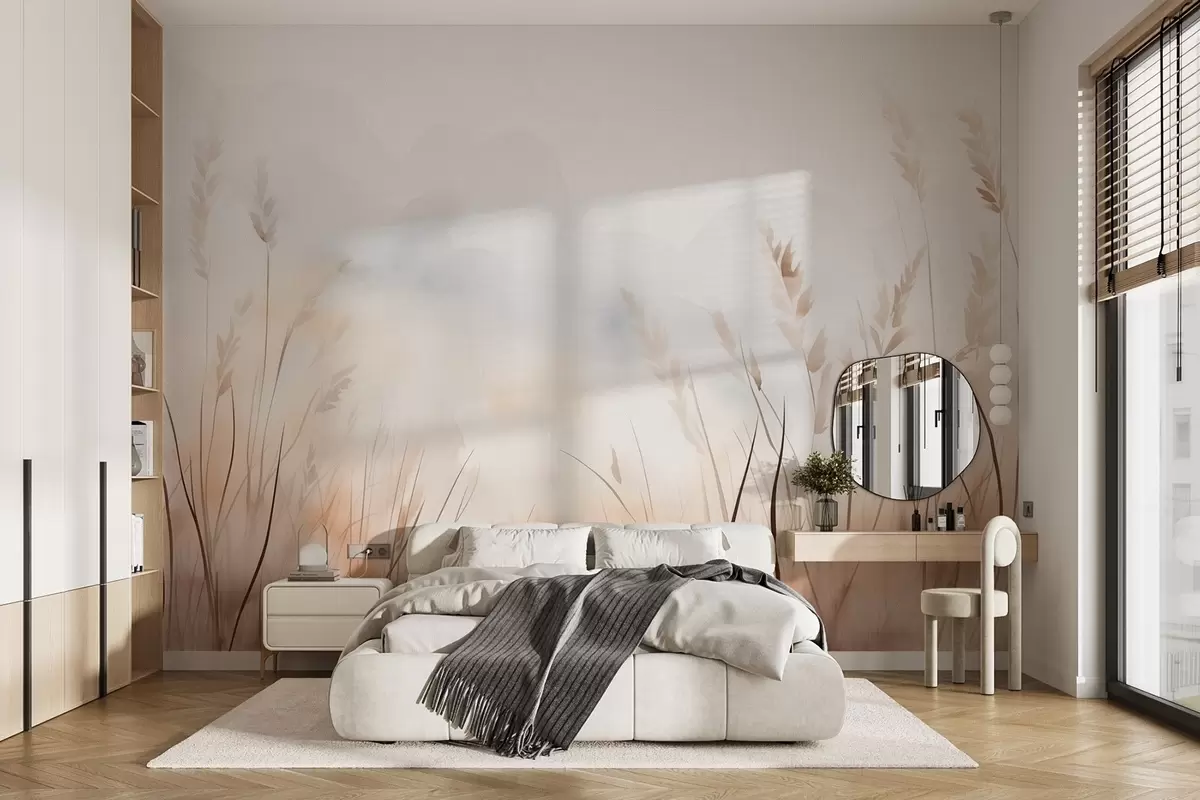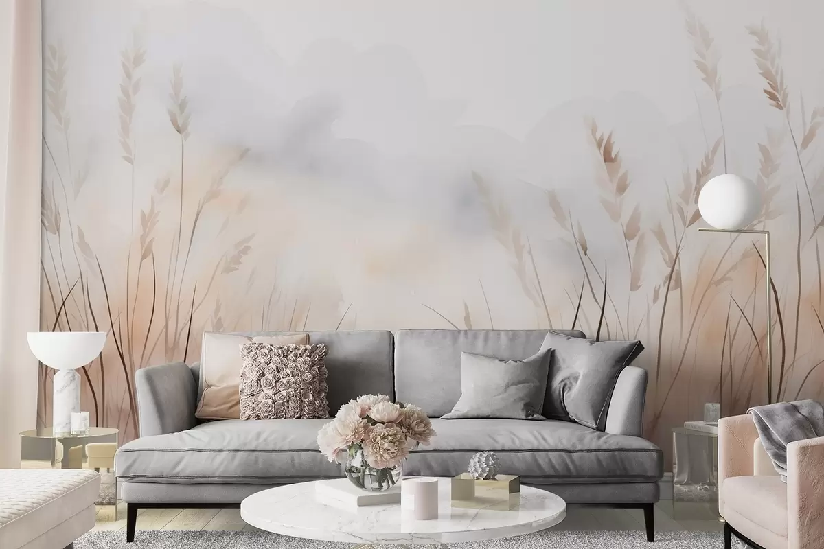 Fototapet Kornöron i dimma i mjuka beige och bruna nyanser Nr. w09327