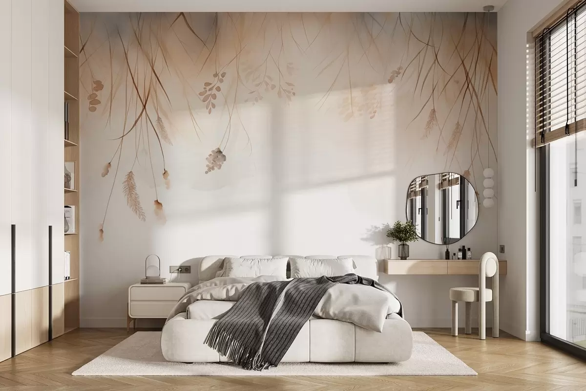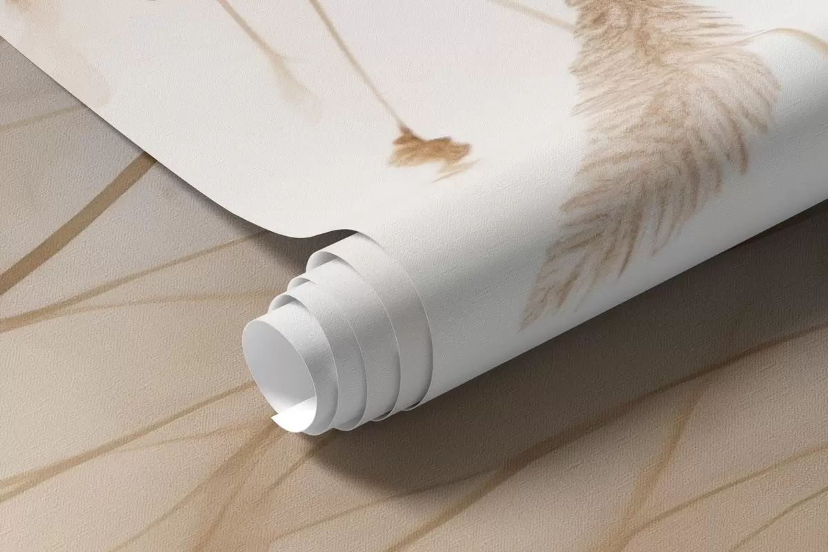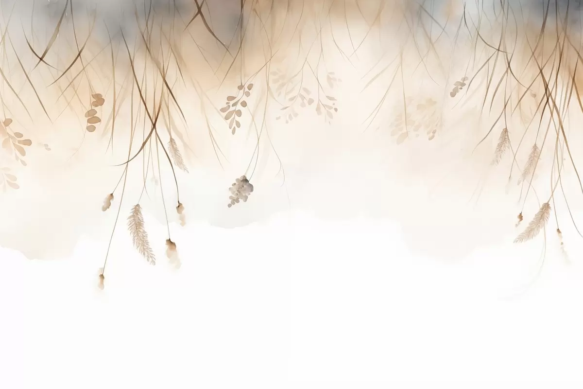 Fototapet Hängande kaveldun och kornax i dimma i mjuka beige och bruna nyanser Nr. w09328