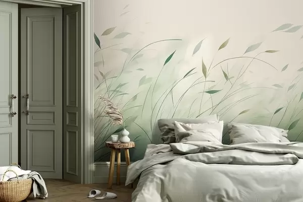 Fototapet Grönt gräs i vinden i akvarellstil Nr. w09331