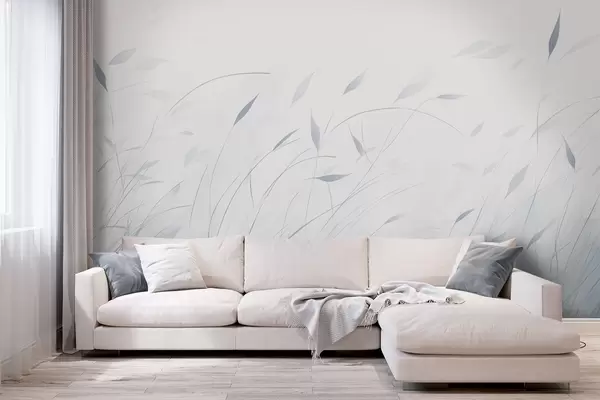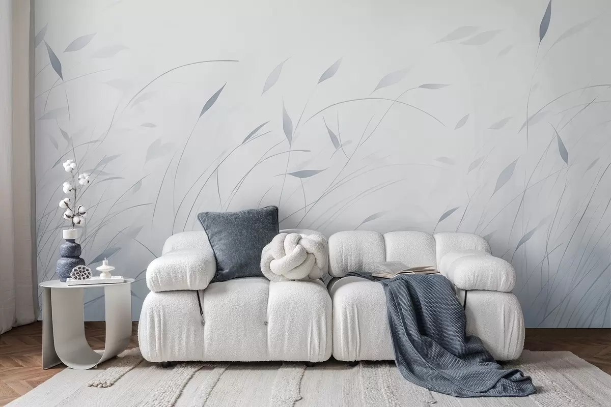 Fototapet Gräs i vinden i akvarellstil i blå nyanser Nr. w09331v2