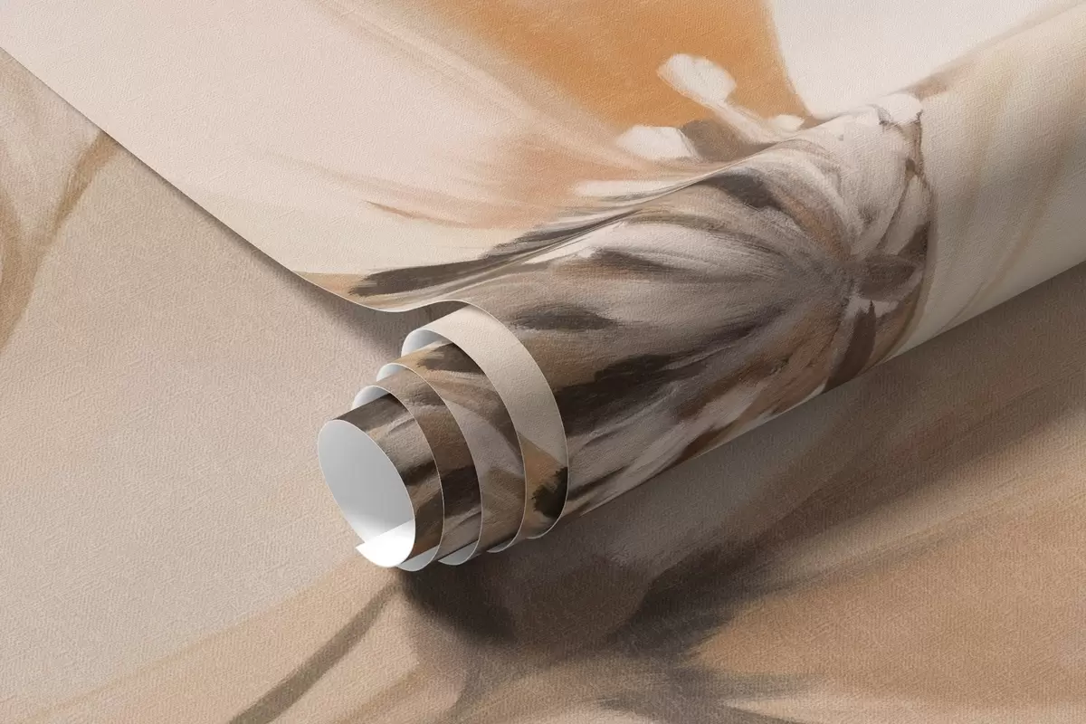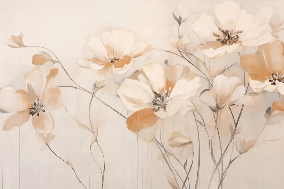 Fototapet Vita och orange texturerade blommor med långa stjälkar, ljus bakgrund, mjuka färger, elegant komposition, känsliga penseldrag Nr. w09335