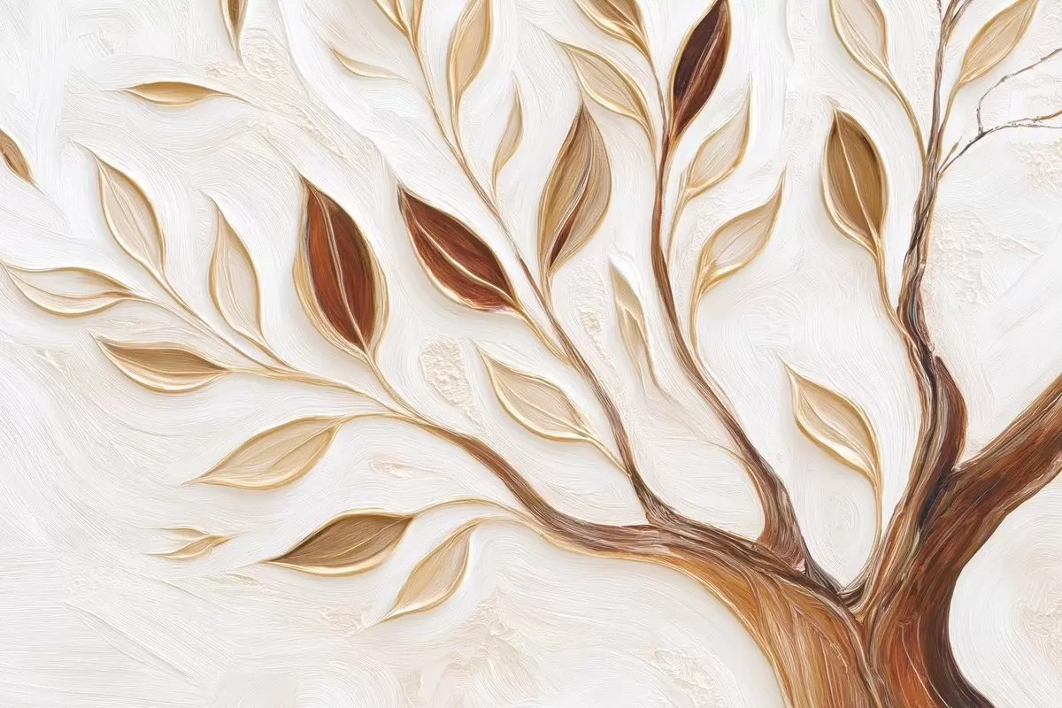Fototapet Dekorativt träd med blad och imitation av en texturerad bakgrund Nr. w09349