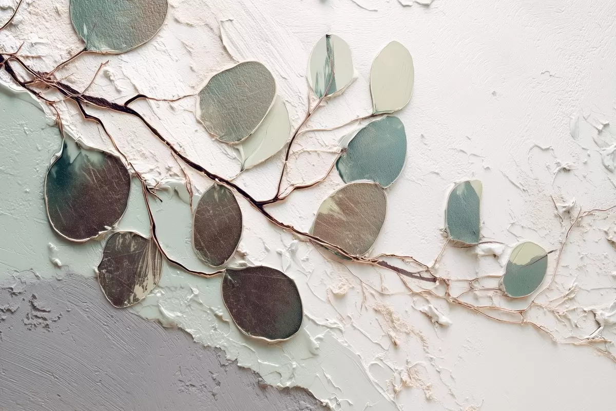 Fototapet Dekorativt träd med blad och imitation av en texturerad bakgrund Nr. w09357