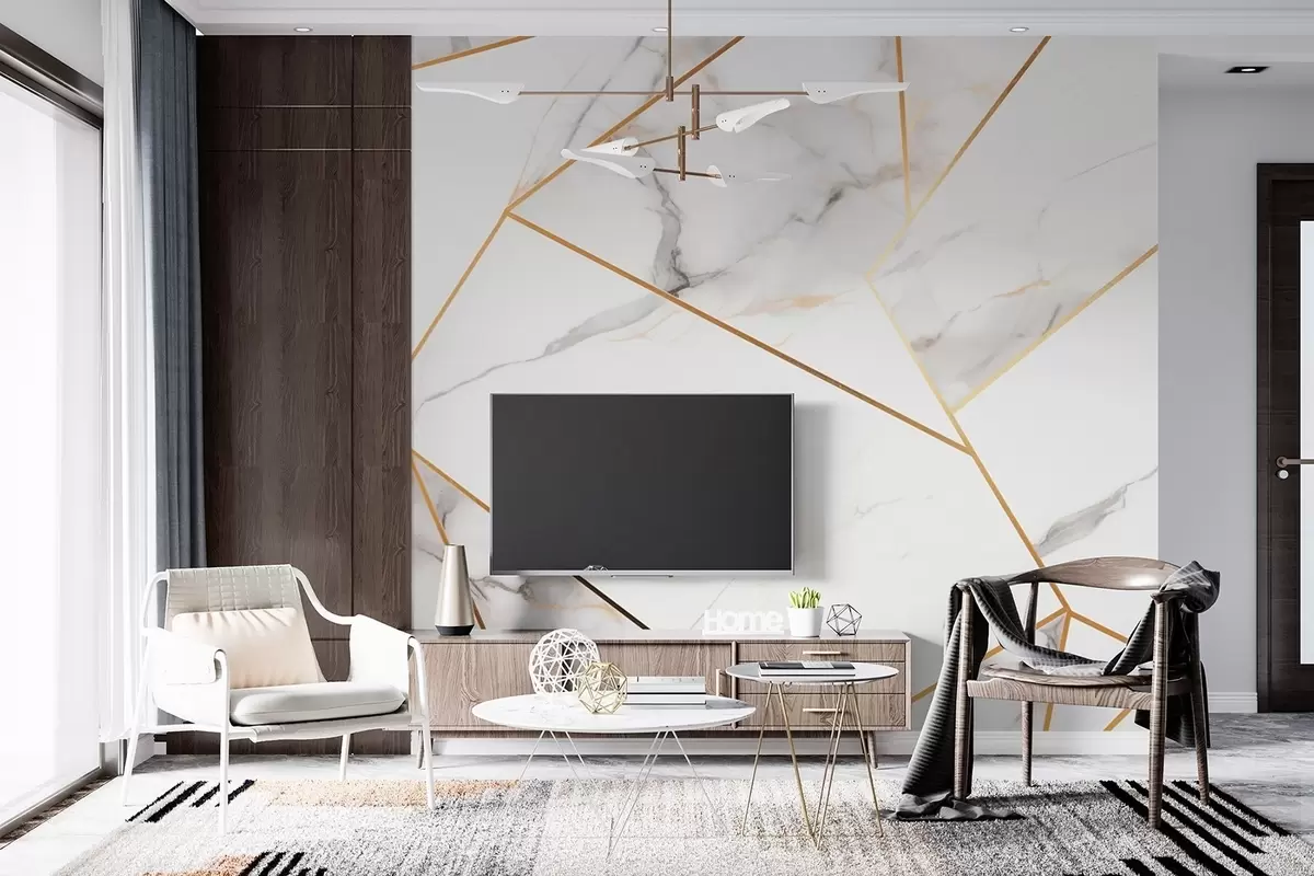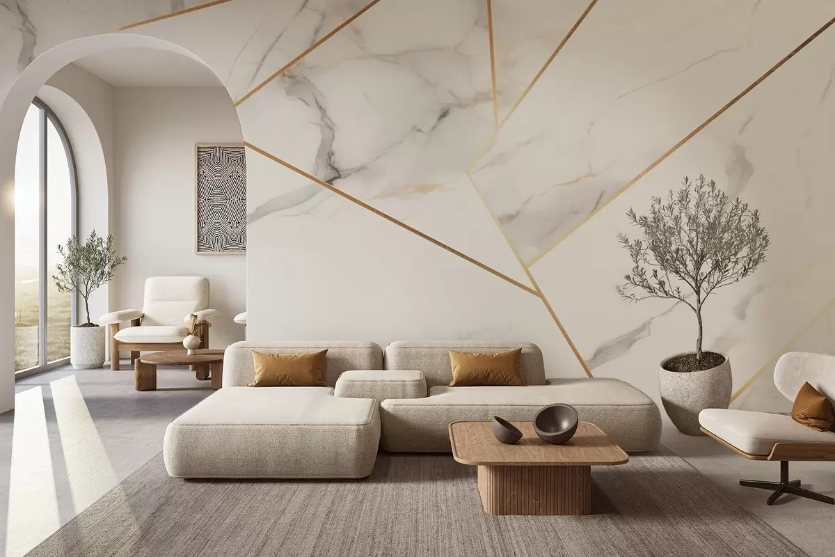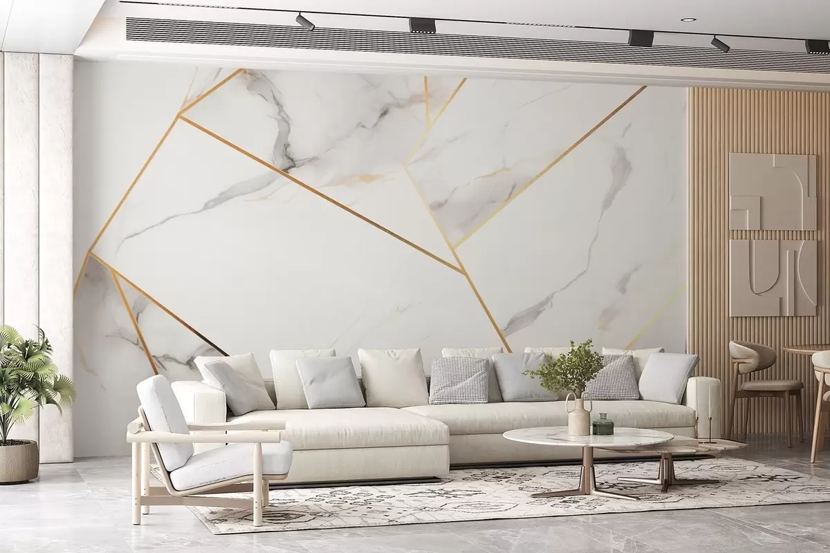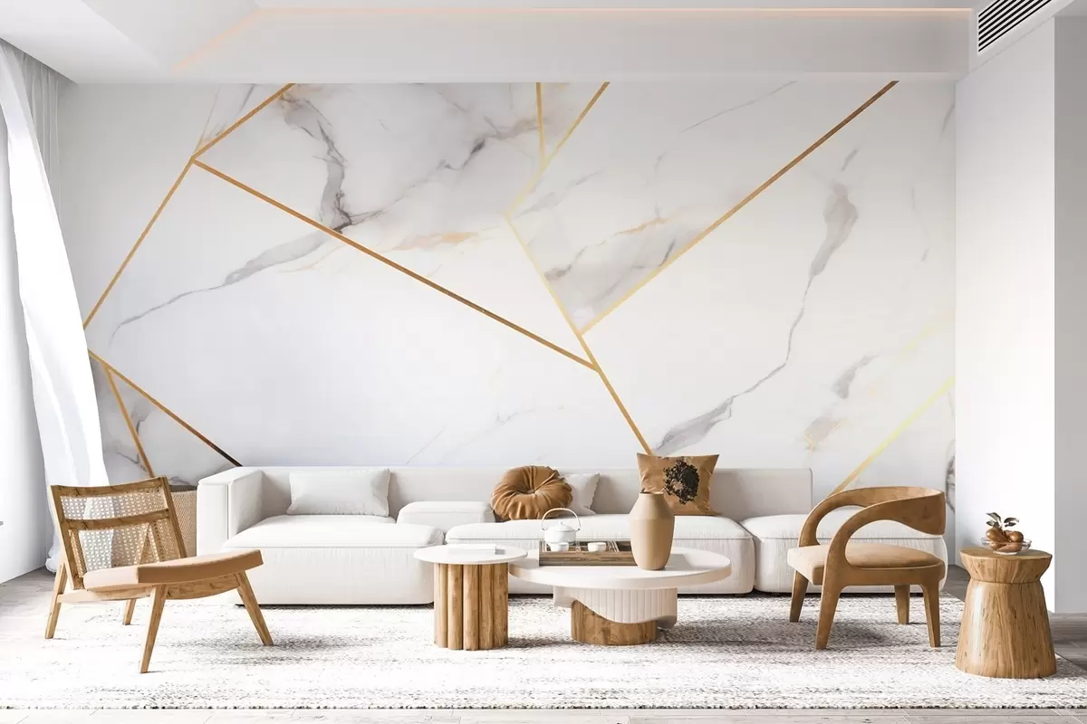 Fototapet Imitation av marmoryta med gult geometriskt mönster Nr. w09363