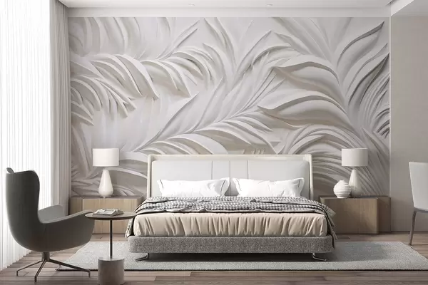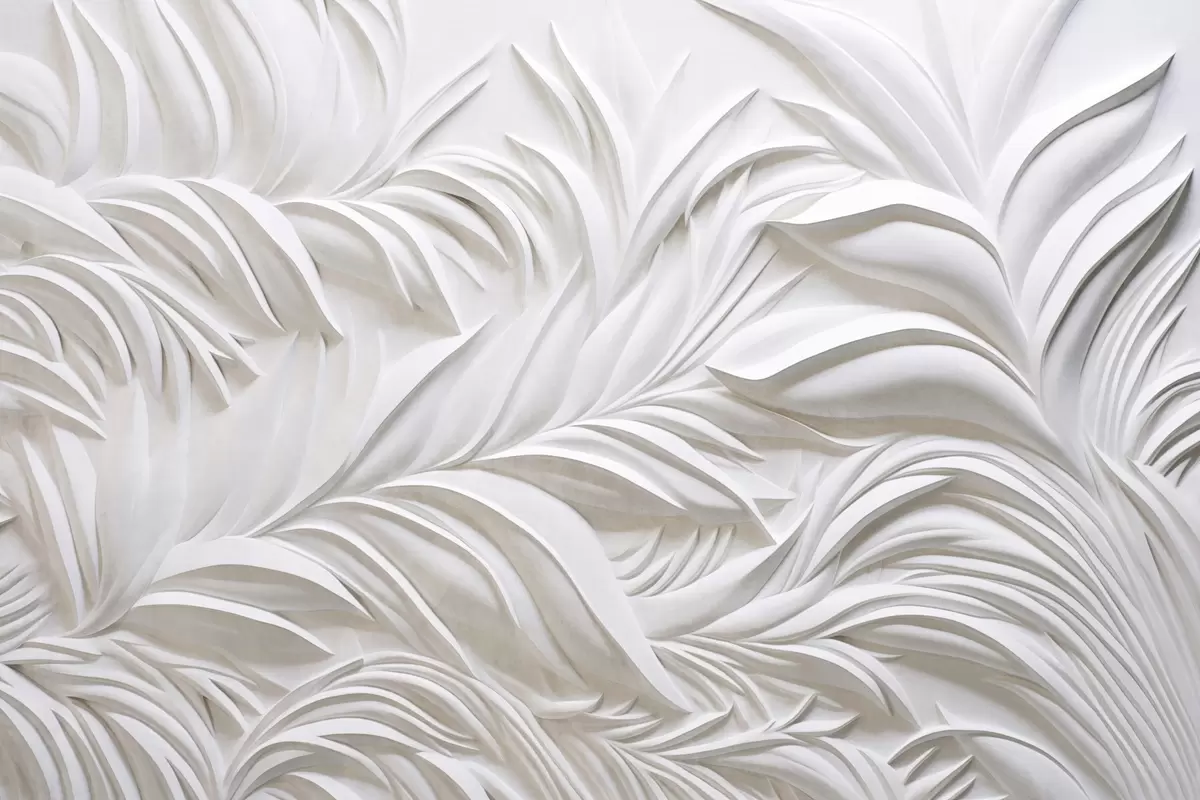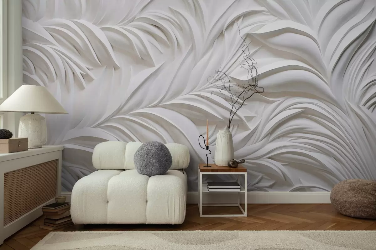 Fototapet Abstrakt texturerade vita blad och blomsterelement, minimalistisk estetik Nr. w09378
