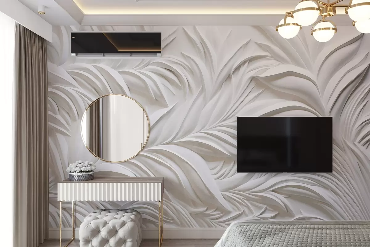 Fototapet Abstrakt texturerade vita blad och blomsterelement, minimalistisk estetik w09378