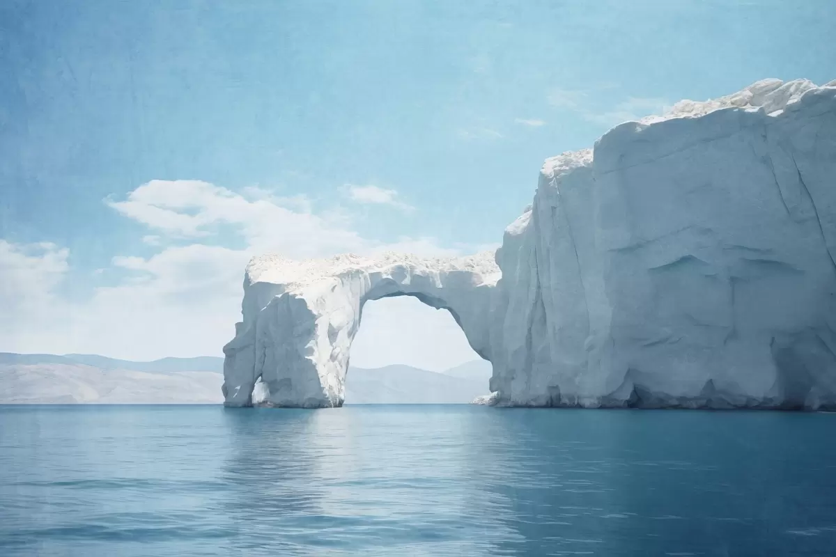 Fototapet Landskap med naturlig isbro över havet, klarblå himmel med några moln, texturerat tryck Nr. w09383