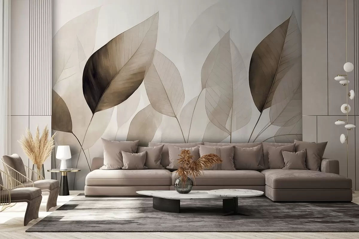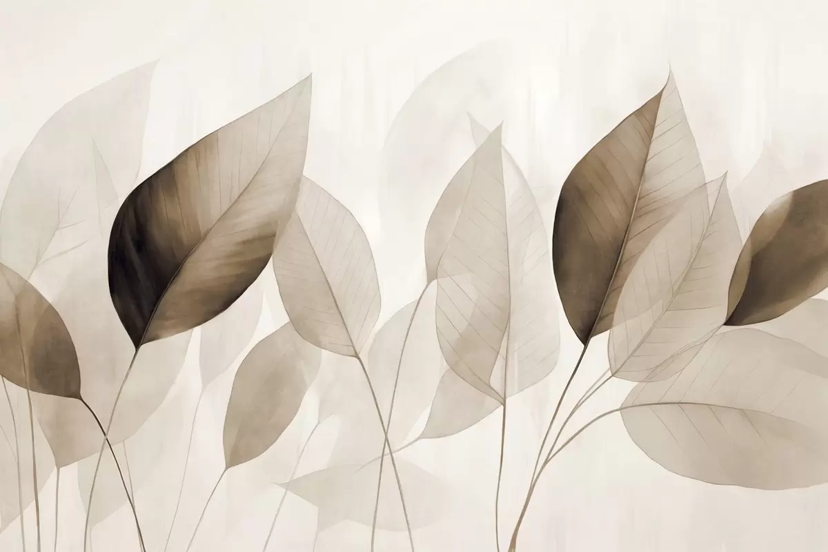 Fototapet Strukturerad målning som imiterar löv i nyanser av brunt och beige med fina ådror och stjälkar Nr. w09400v1