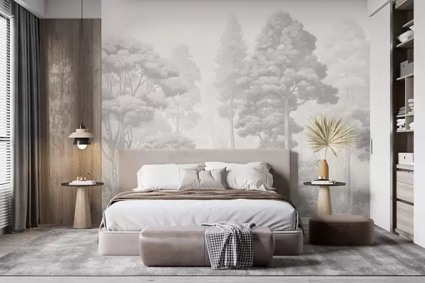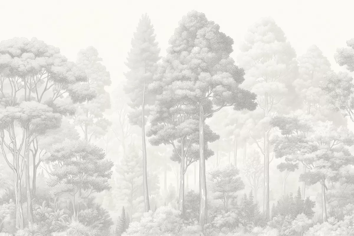 Fototapet Konstnärligt skogslandskap i tekniken svartvit grafisk skraffering Nr. w09411