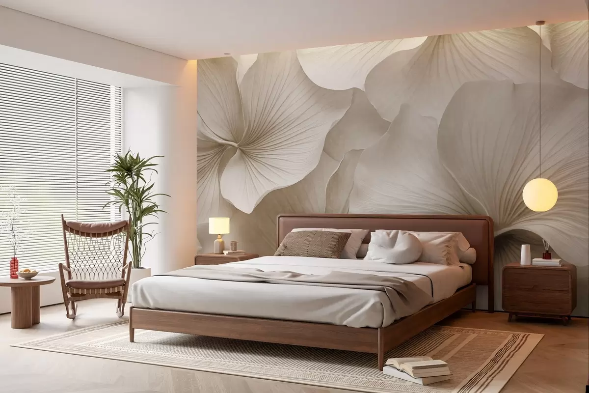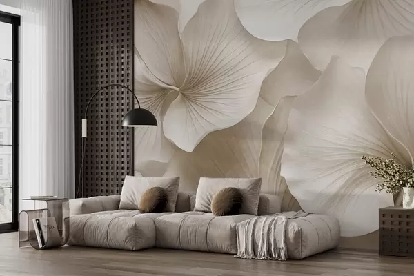 Fototapet Vita och beige ginkgoblad, mjuk textur, abstrakt blommig bakgrund, minimalistisk modern stil Nr. w09421v1
