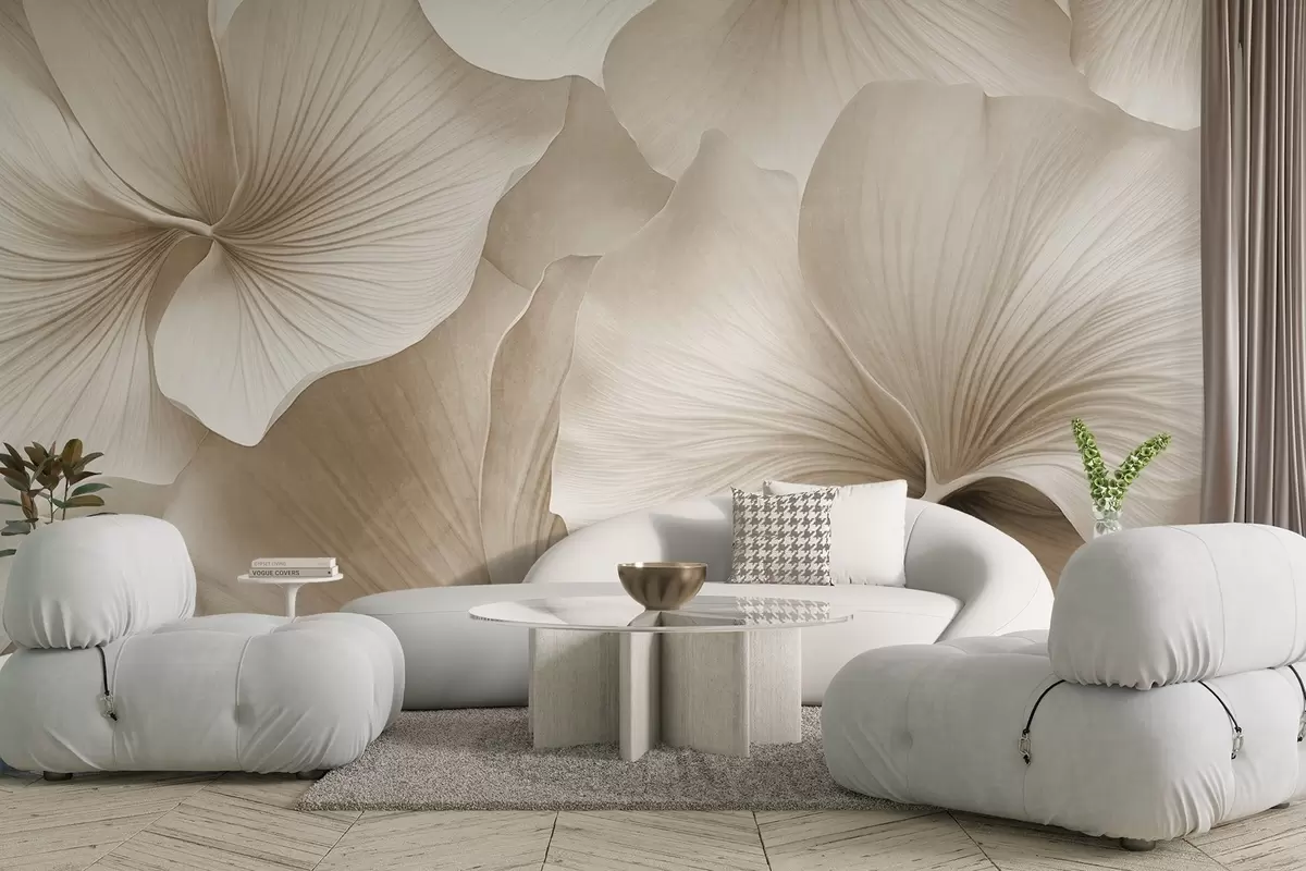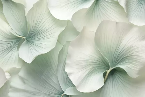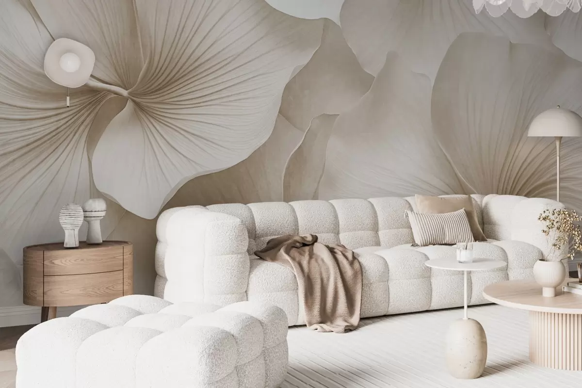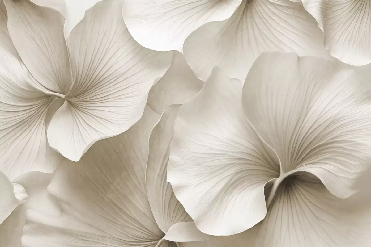Fototapet Vita och beige ginkgoblad, mjuk textur, abstrakt blommig bakgrund, minimalistisk modern stil Nr. w09421v1