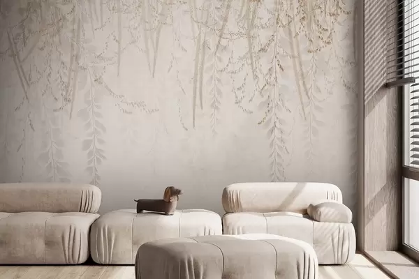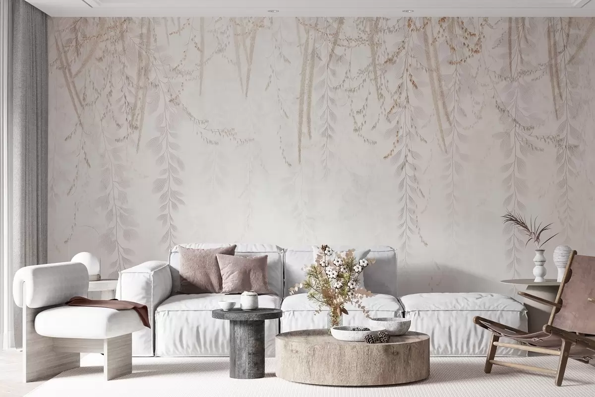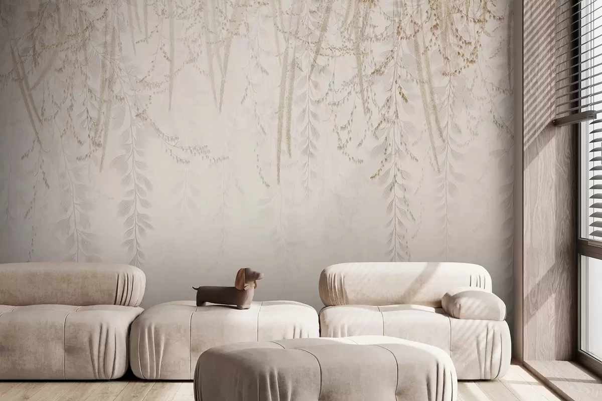 Fototapet Lätta hängande löv och grenar i beige toner w09433