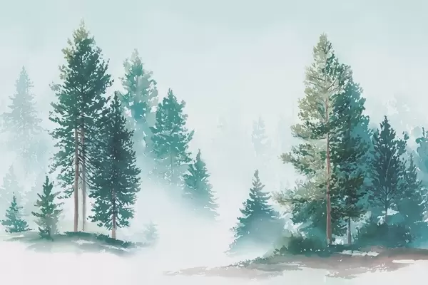Fototapet Dimma i tallskog i akvarellstil Nr. w09444