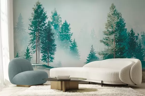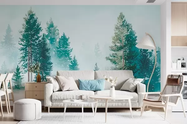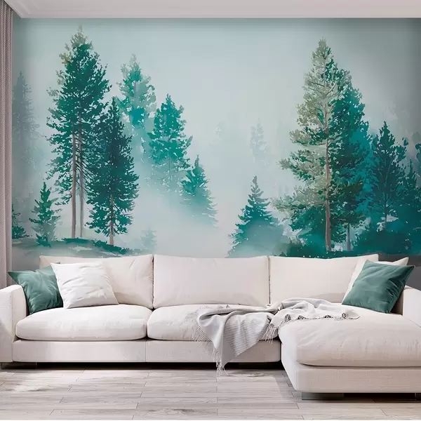 Fototapet Dimma i tallskog i akvarellstil Nr. w09444