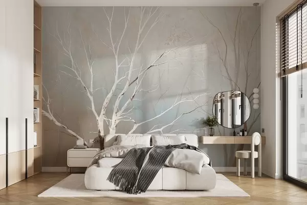 Fototapet Lätta grenar i morgondimma i pastellfärger Nr. w09447