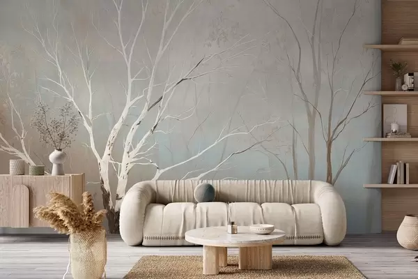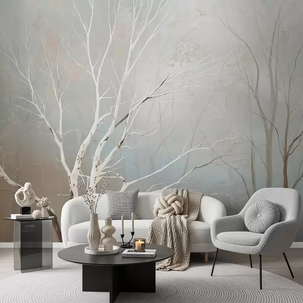 Fototapet Lätta grenar i morgondimma i pastellfärger Nr. w09447