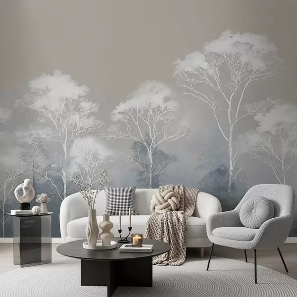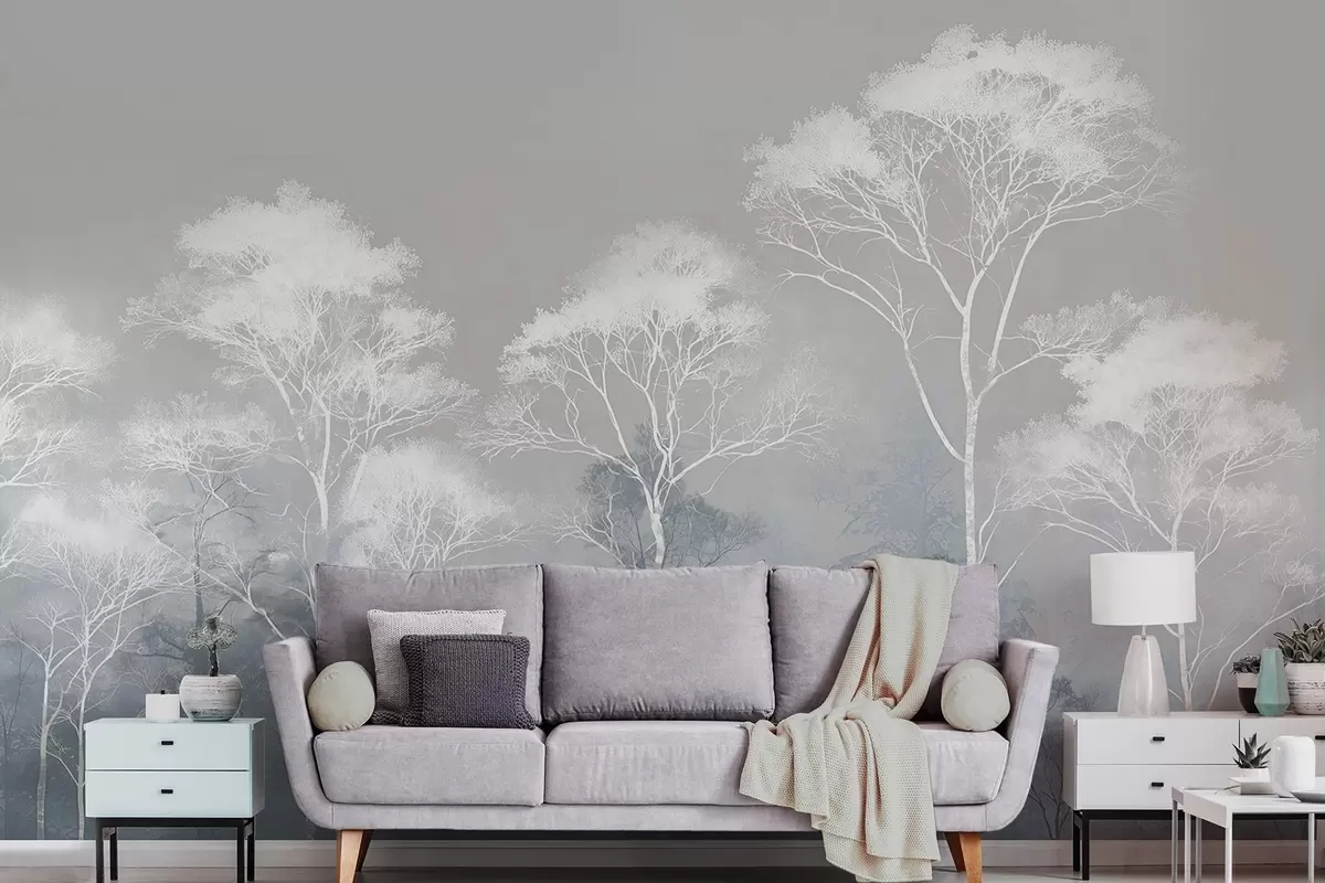Fototapet Minimalistiska träd i blågrå färgskala, i dimma Nr. w09448
