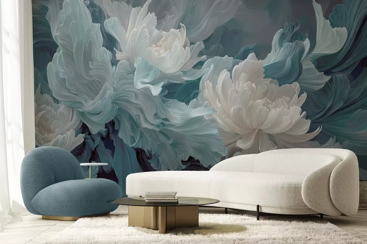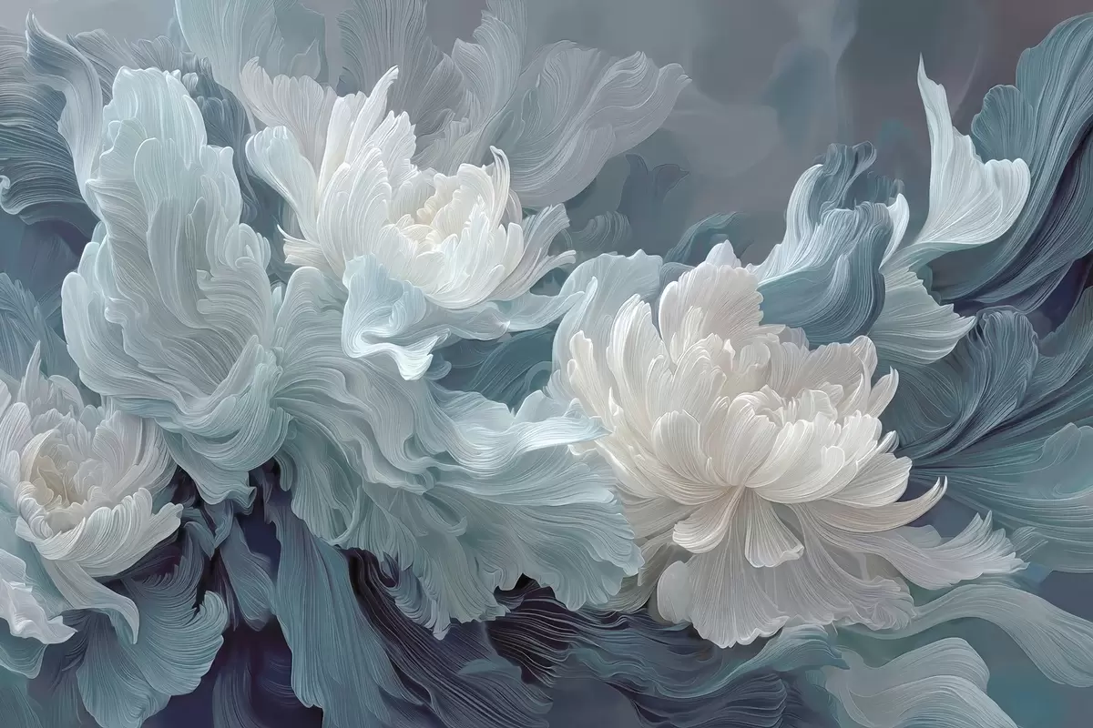 Fototapet Abstrakta blommor i blå och turkosa nyanser Nr. w09452