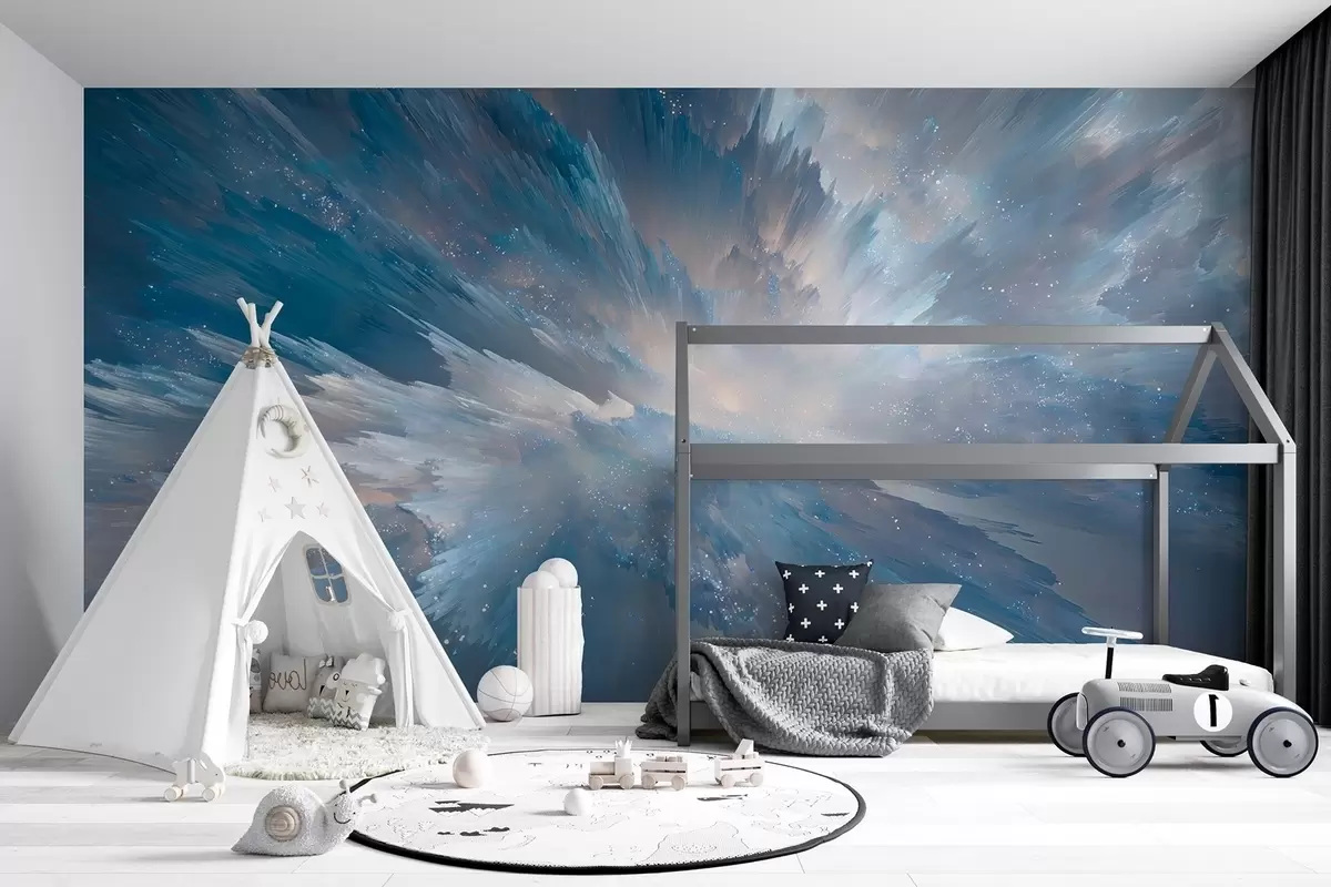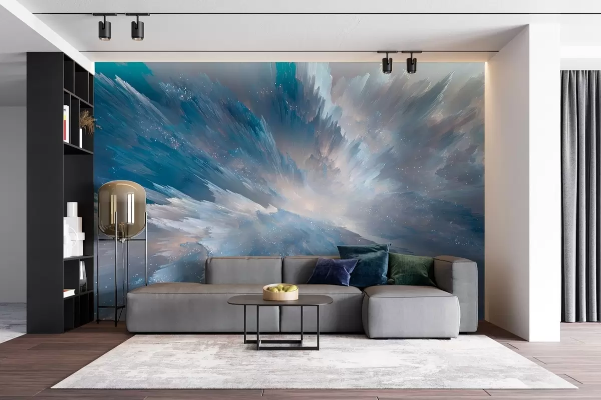 Fototapet Abstrakt kosmisk himmelglöd i isiga blå toner Nr. w09461