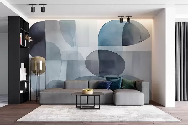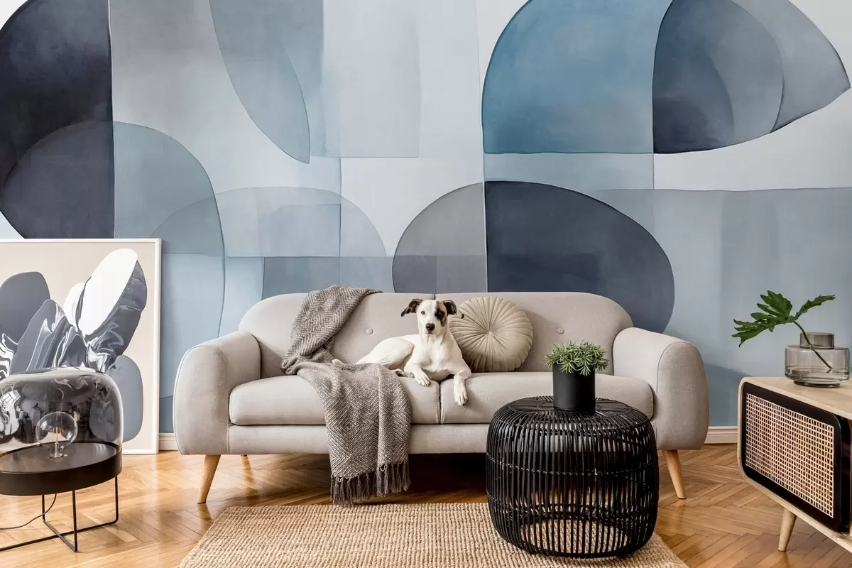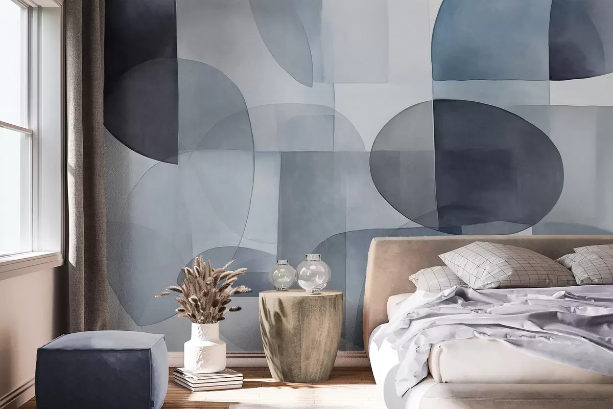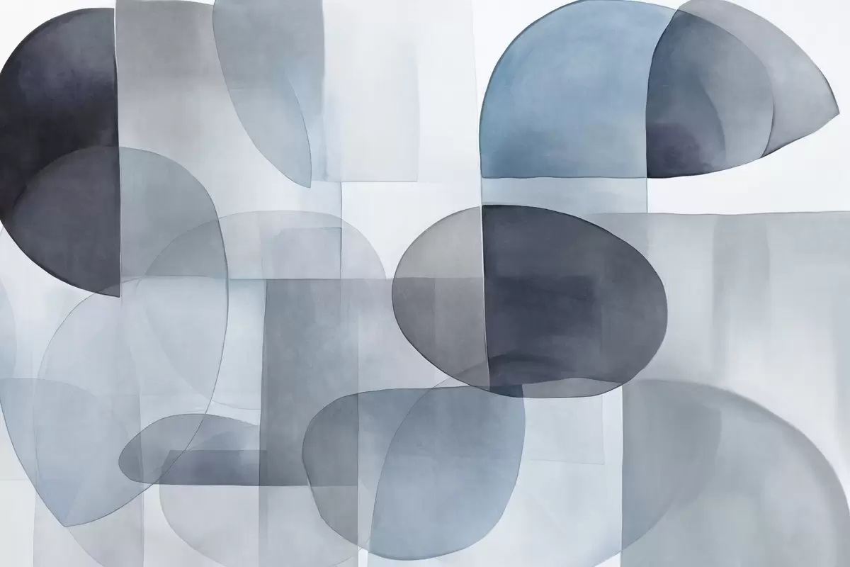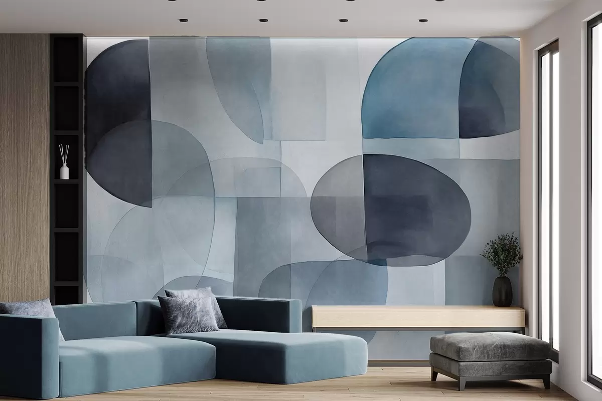 Fototapet Abstrakta texturerade former i grå och blå nyanser, dämpade toner, minimalistisk komposition, neutral bakgrund Nr. w09467v1