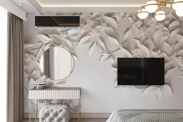 Fototapet Vita texturerade blommor och blad, blomsterarrangemang, elegant design, minimalistisk stil, dekorativ konst Nr. w09479