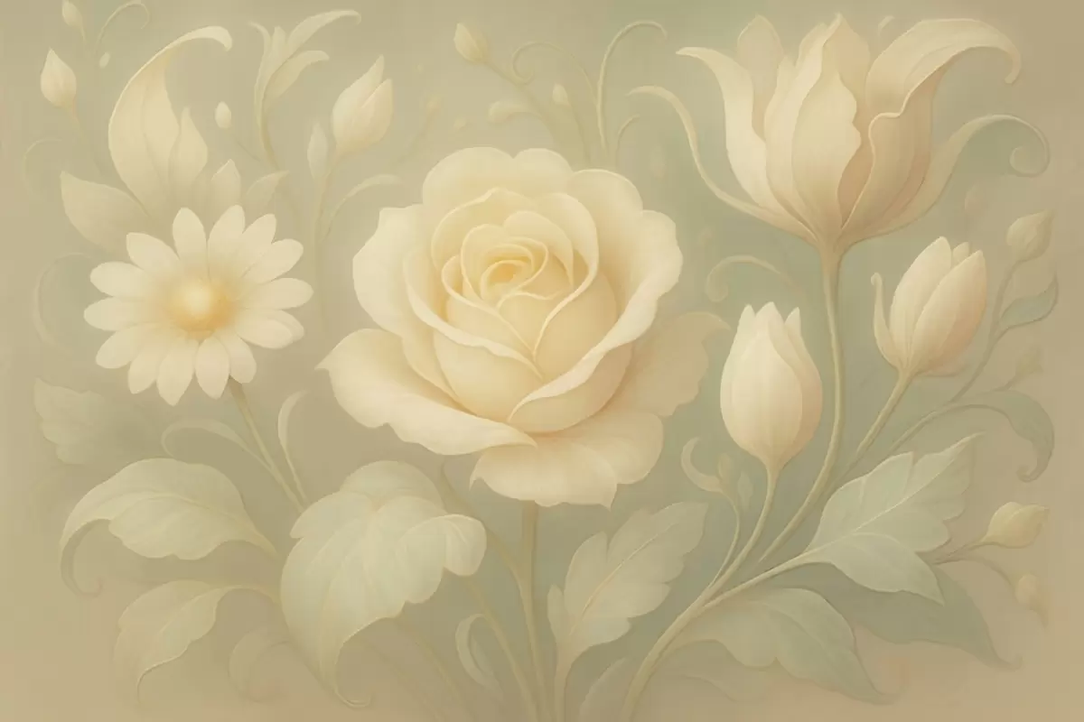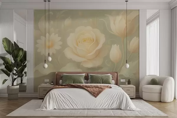 Fototapet Delikat vintage-komposition med beige rosor på ljusgrön bakgrund Nr. w09499