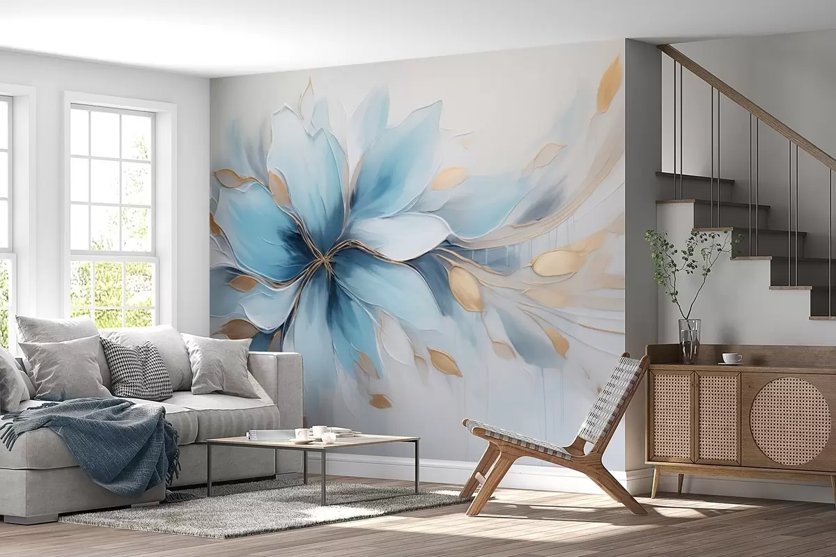 Fototapet Abstrakt blå blomma av lugn med blad Nr. w09500