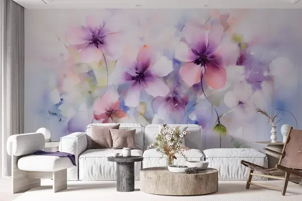 Fototapet Vårens akvarellblommor i nyanser av rosa och lila Nr. w09502