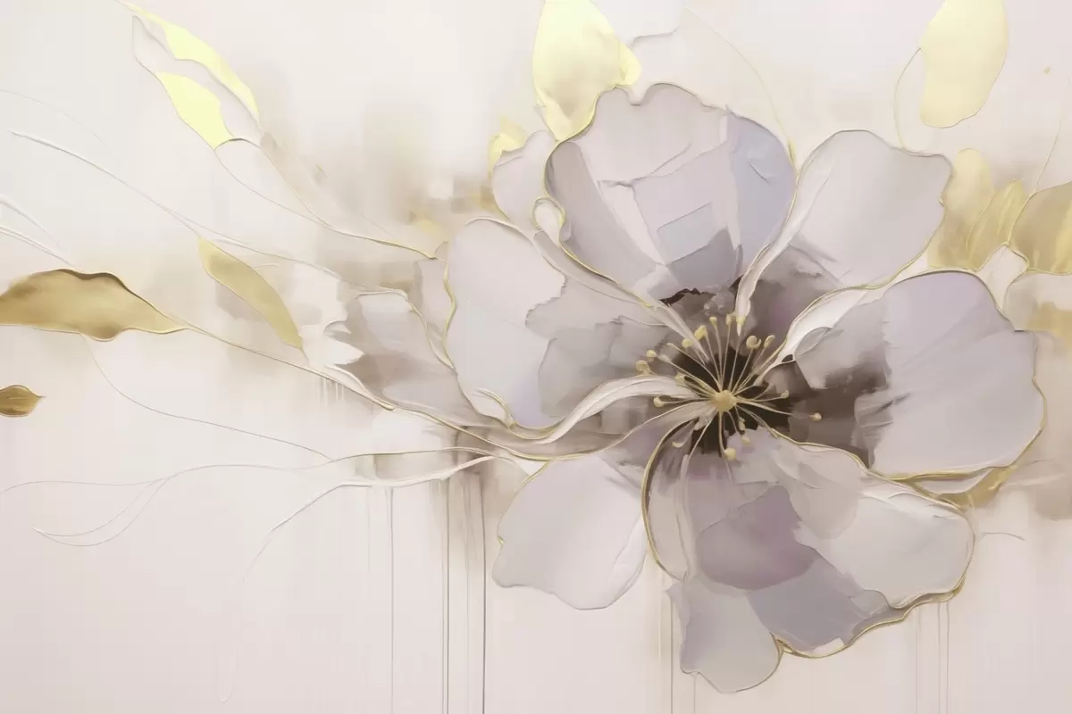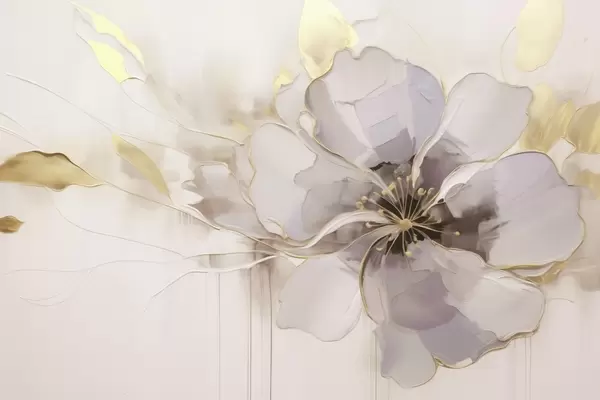 Fototapet Blå blomma med gula accenter i abstrakt penseldragstil Nr. w09505