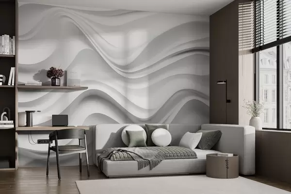 Fototapet Svartvit abstrakt 3D-komposition med mjuka vågor Nr. w09506