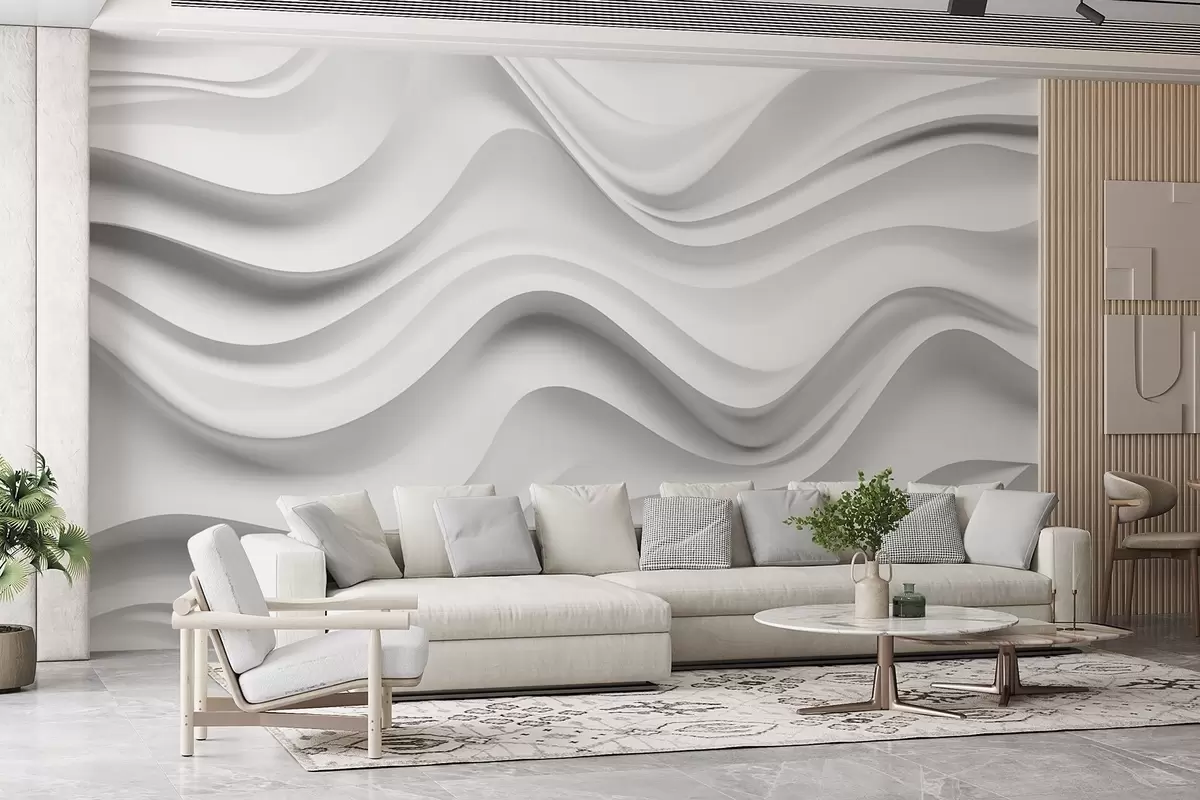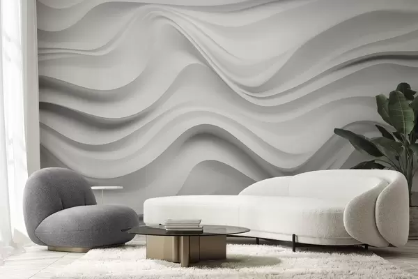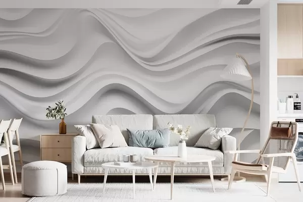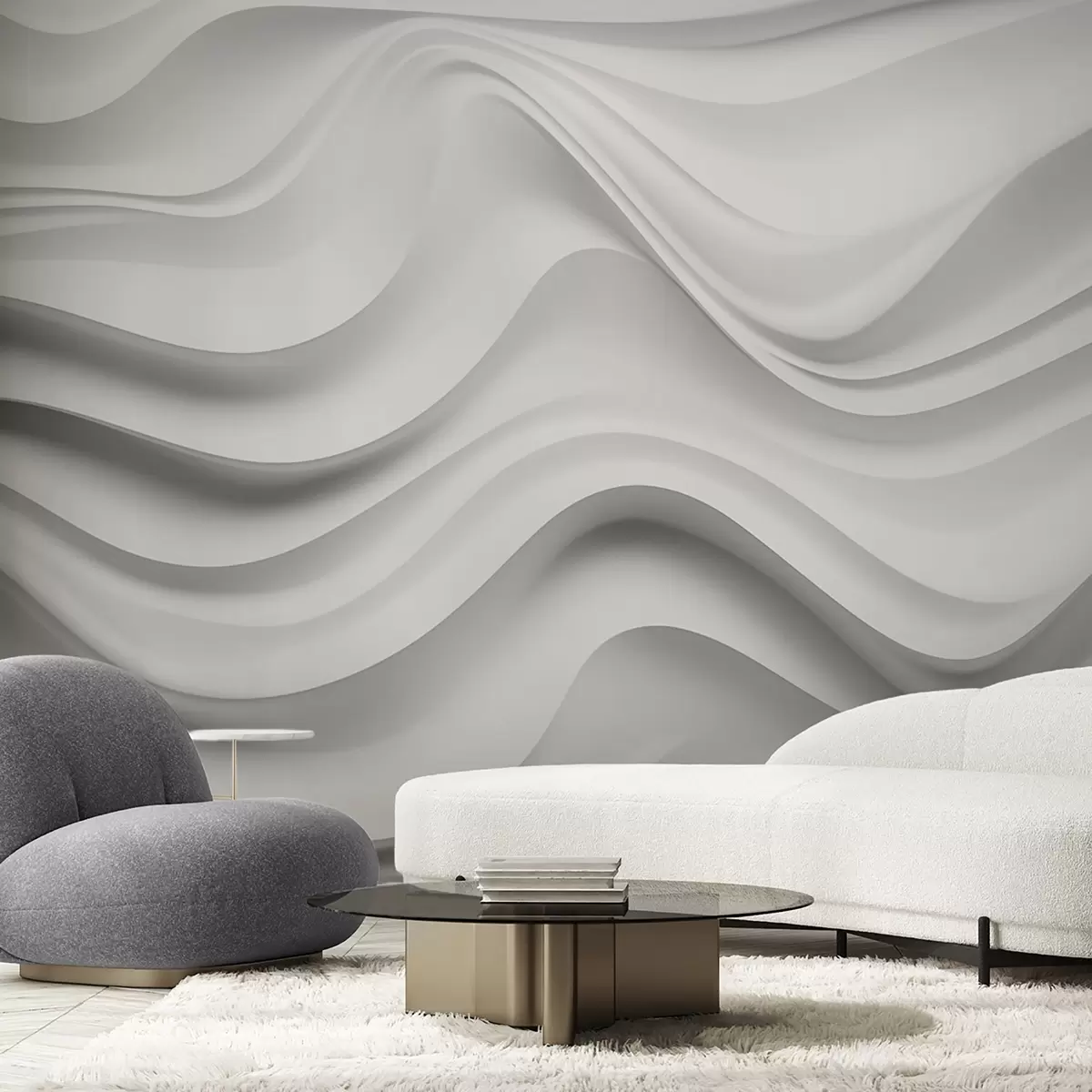 Fototapet Svartvit abstrakt 3D-komposition med mjuka vågor Nr. w09506