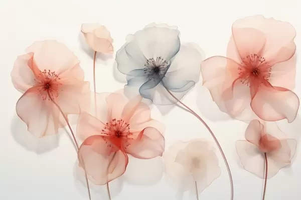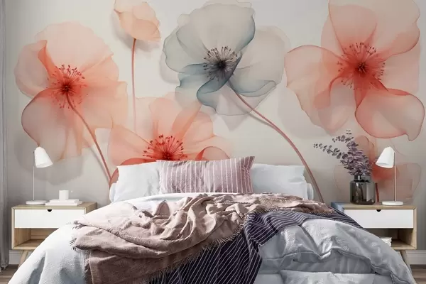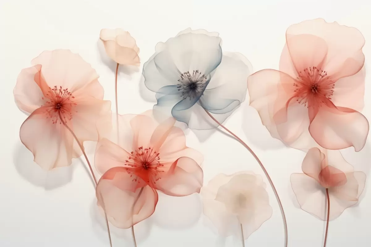 Fototapet Genomskinliga blommor i röda och blå toner Nr. w09515